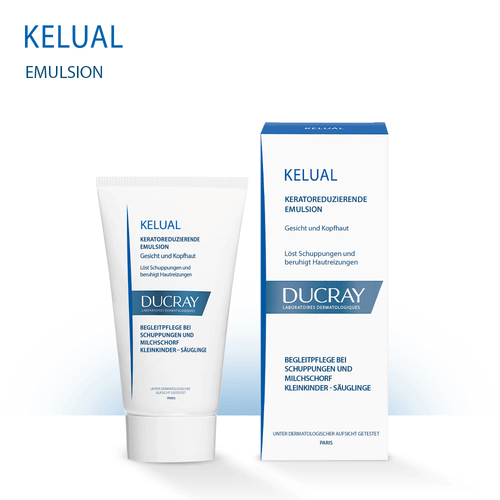KELUAL Emulsion ist die sanfte Pflege zur Ablösung von Hautschuppen. Juckreiz und Rötungen werden nachhaltig gelindert und bakteriellen Hautinfektionen (z. B. Grindflechte beim Säugling) vorgebeugt. KELUAL Emulsion ist optimal als Pflege bei Sebostase (Fettmangel) geeignet. Die reizfreie und neutrale O/W-Emulsion ist atmungsaktiv und nicht fettend.