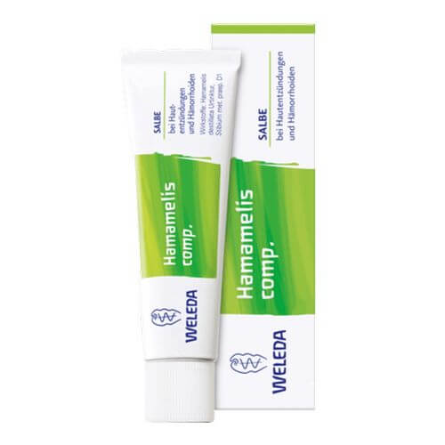 Hamamelis comp. wirkt der Entzündung entgegen und lindert den Juckreiz. Die Wände der Hämorrhoidalvenen werden gestärkt, so dass sie sich wieder in ihre ursprüngliche Form zurückziehen können. Die Wirkstoffe Zaubernuss und Stibium metallicum praeparatum hemmen die Entzündung und unterstützen die Haut bei der Heilung. Nässende Stellen trocknen ab.